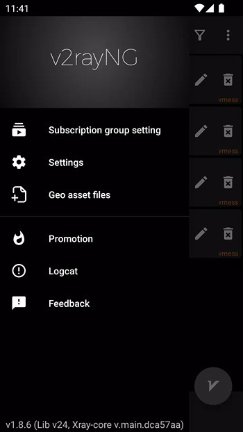 The interface of v2rayNG is minimalistic yet functional, focusing on performance and user control. The main screen displays server configurations, connection status, and quick access to proxy settings.